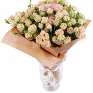 Букет «Крем-брюле» состоит из нескольких кустарных роз светлой цветовой гаммы. Спектр цветов берет начало в белом и заканчивается на розовом цвете, включая в себя множество растений с разными оттенками. Белые розы всегда были наиболее популярным символом чистоты, непорочности и отсутствия корысти. Букет прекрасно подходит для извинений перед друзьями или любимыми.