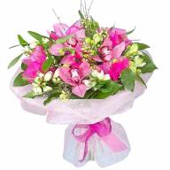 Преобладающим цветом этого букета является розовый, который символизирует нежность и теплое отношение. Композиция состоит из ярких орхидей, олицетворяющих совершенство, а также подчеркивающих элегантность и изысканность букета. А сочетание с изящными альстромериями поможет выразить дружеское расположение и пожелать богатства и благополучия. Такой букет является отличным способом заслужить прощение у близкого человека, а также просто подарить множество положительных эмоций.